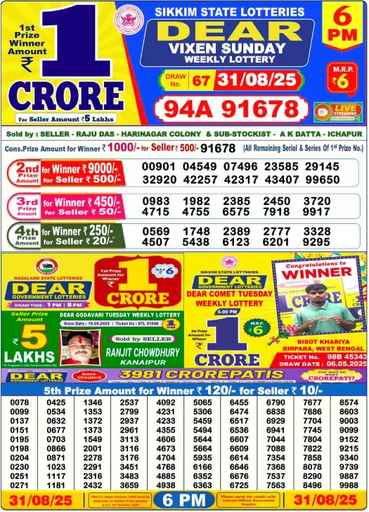 RESULT DEAR VIXEN SUNDAY WEEKLY LOTTERY 31.08.2025 Leave a Comment on RESULT DEAR VIXEN SUNDAY WEEKLY LOTTERY 31.08.2025 Share: XFacebookPinterestRedditVKDiggLinkedinMix