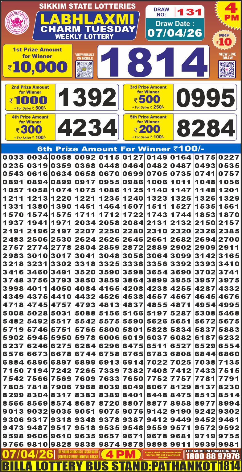 RESULT LABHLAXMI CHARM TUESDAY WEEKLY LOTTERY 07.04.2026 Leave a Comment on RESULT LABHLAXMI CHARM TUESDAY WEEKLY LOTTERY 07.04.2026 Share: XFacebookPinterestRedditVKDiggLinkedinMix