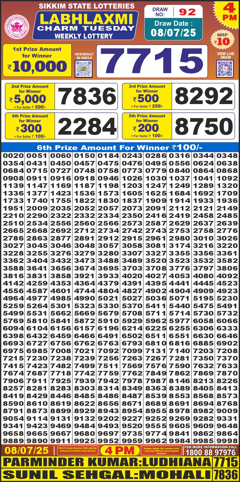 RESULT LABHLAXMI CHARM TUESDAY WEEKLY LOTTERY 08.07.2025 Leave a Comment on RESULT LABHLAXMI CHARM TUESDAY WEEKLY LOTTERY 08.07.2025 Share: XFacebookPinterestRedditVKDiggLinkedinMix
