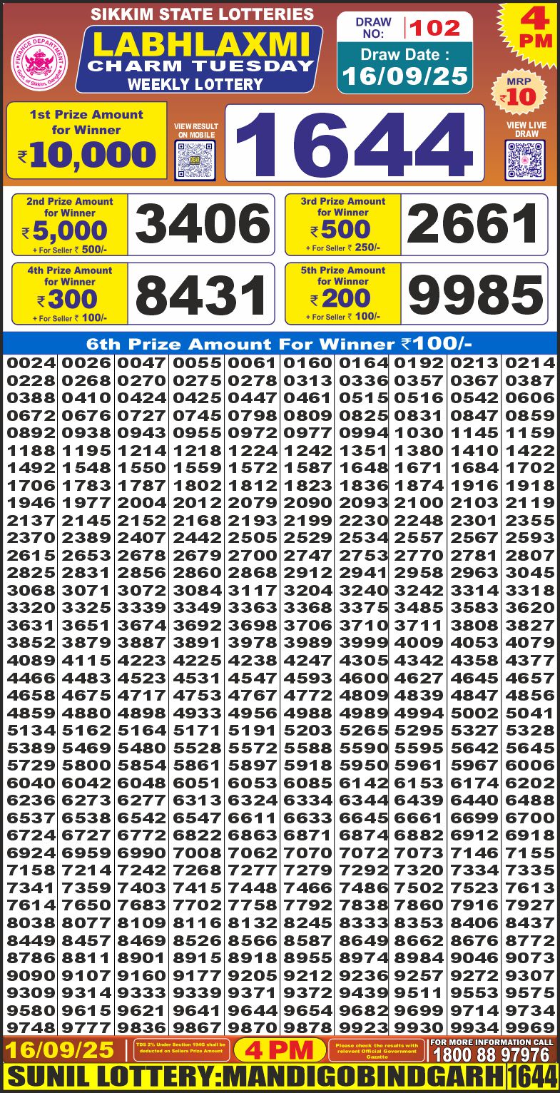 RESULT LABHLAXMI CHARM TUESDAY WEEKLY LOTTERY 16.09.2025 Leave a Comment on RESULT LABHLAXMI CHARM TUESDAY WEEKLY LOTTERY 16.09.2025 Share: XFacebookPinterestRedditVKDiggLinkedinMix