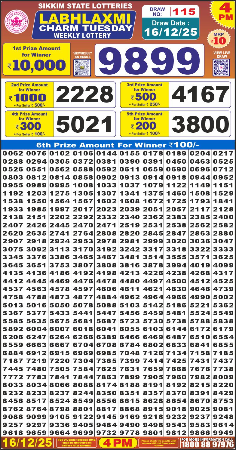 RESULT LABHLAXMI CHARM TUESDAY WEEKLY LOTTERY 16.12.2025 Leave a Comment on RESULT LABHLAXMI CHARM TUESDAY WEEKLY LOTTERY 16.12.2025 Share: XFacebookPinterestRedditVKDiggLinkedinMix