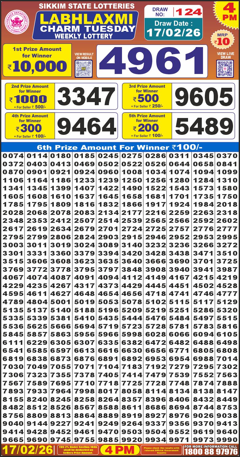 RESULT LABHLAXMI CHARM TUESDAY WEEKLY LOTTERY 17.02.2026 Leave a Comment on RESULT LABHLAXMI CHARM TUESDAY WEEKLY LOTTERY 17.02.2026 Share: XFacebookPinterestRedditVKDiggLinkedinMix