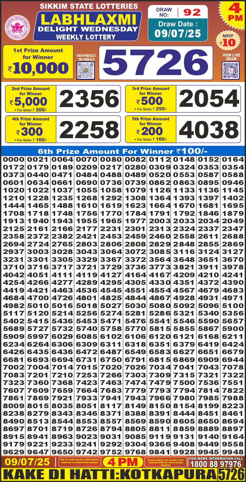 RESULT LABHLAXMI DELIGHT WEDNESDAY WEEKLY LOTTERY 09.07.2025 Leave a Comment on RESULT LABHLAXMI DELIGHT WEDNESDAY WEEKLY LOTTERY 09.07.2025 Share: XFacebookPinterestRedditVKDiggLinkedinMix