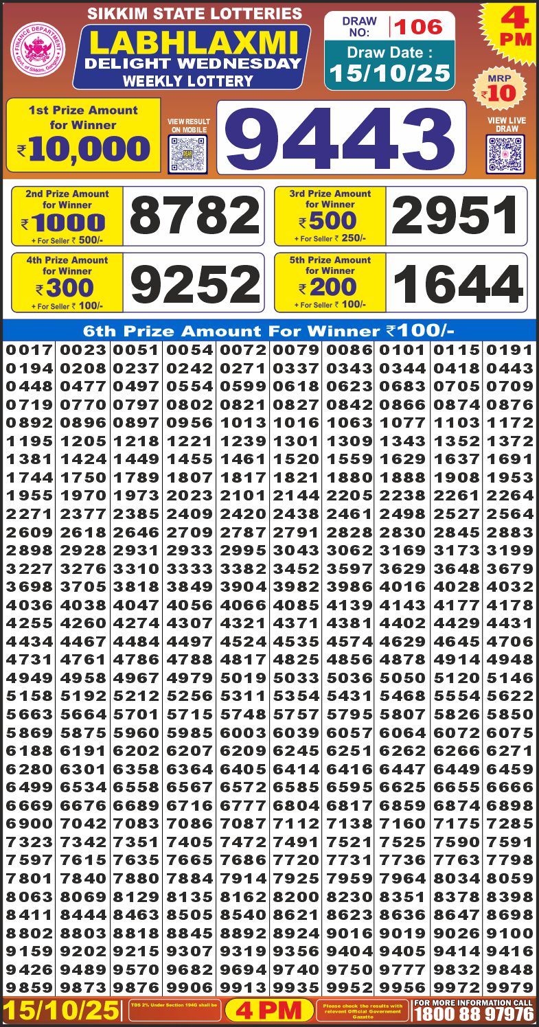 RESULT LABHLAXMI DELIGHT WEDNESDAY WEEKLY LOTTERY 15.10.2025 Leave a Comment on RESULT LABHLAXMI DELIGHT WEDNESDAY WEEKLY LOTTERY 15.10.2025 Share: XFacebookPinterestRedditVKDiggLinkedinMix