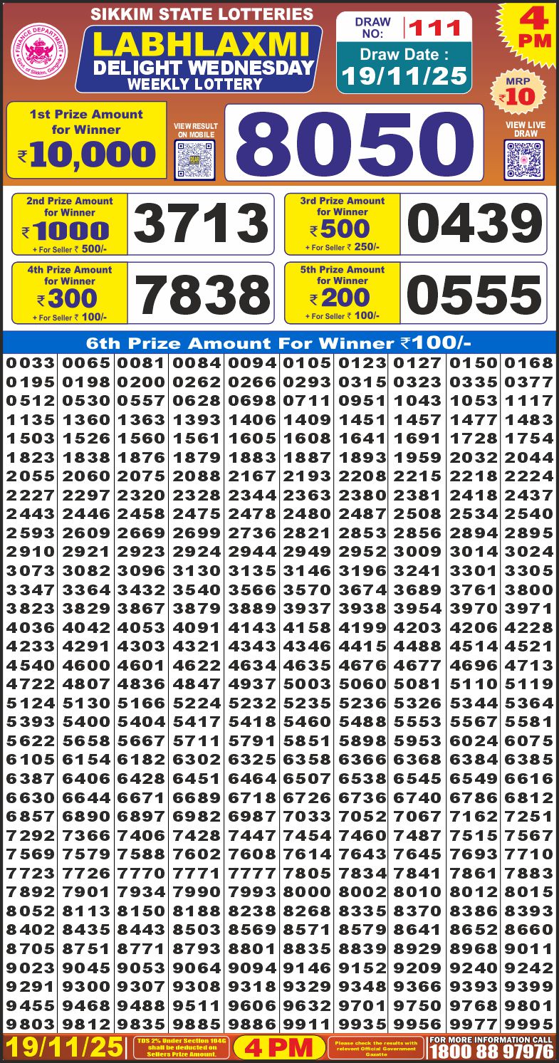 RESULT LABHLAXMI DELIGHT WEDNESDAY WEEKLY LOTTERY 19.11.2025 Leave a Comment on RESULT LABHLAXMI DELIGHT WEDNESDAY WEEKLY LOTTERY 19.11.2025 Share: XFacebookPinterestRedditVKDiggLinkedinMix