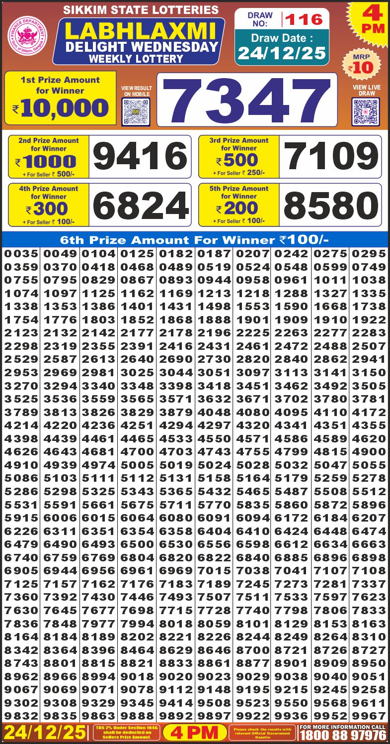 RESULT LABHLAXMI DELIGHT WEDNESDAY WEEKLY LOTTERY 24.12.2025 Leave a Comment on RESULT LABHLAXMI DELIGHT WEDNESDAY WEEKLY LOTTERY 24.12.2025 Share: XFacebookPinterestRedditVKDiggLinkedinMix