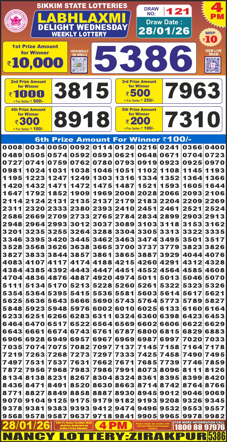 RESULT LABHLAXMI DELIGHT WEDNESDAY WEEKLY LOTTERY 28.01.2026 Leave a Comment on RESULT LABHLAXMI DELIGHT WEDNESDAY WEEKLY LOTTERY 28.01.2026 Share: XFacebookPinterestRedditVKDiggLinkedinMix