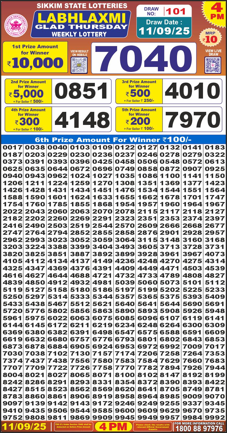 RESULT LABHLAXMI GLAD THURSDAY WEEKLY LOTTERY 11.09.2025 Leave a Comment on RESULT LABHLAXMI GLAD THURSDAY WEEKLY LOTTERY 11.09.2025 Share: XFacebookPinterestRedditVKDiggLinkedinMix