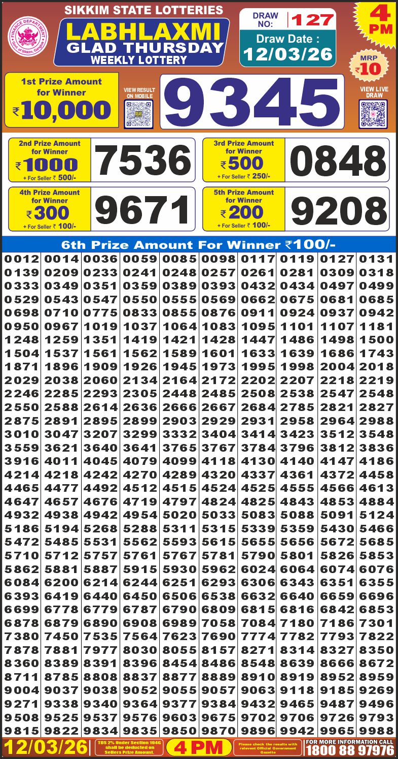 RESULT LABHLAXMI GLAD THURSDAY WEEKLY LOTTERY 12.03.2026 Leave a Comment on RESULT LABHLAXMI GLAD THURSDAY WEEKLY LOTTERY 12.03.2026 Share: XFacebookPinterestRedditVKDiggLinkedinMix