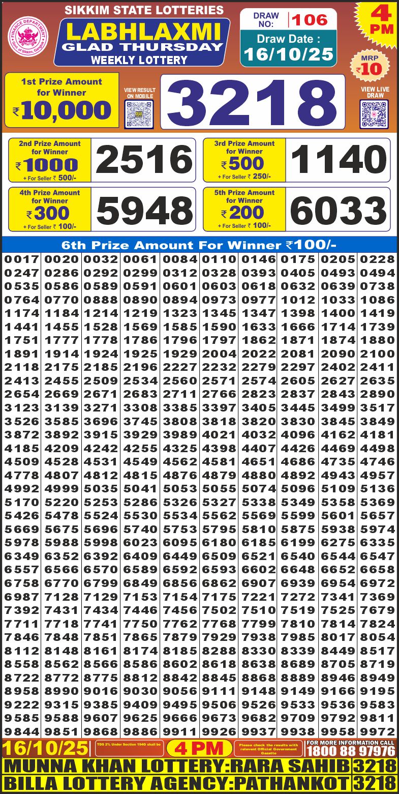 RESULT LABHLAXMI GLAD THURSDAY WEEKLY LOTTERY 16.10.2025 Leave a Comment on RESULT LABHLAXMI GLAD THURSDAY WEEKLY LOTTERY 16.10.2025 Share: XFacebookPinterestRedditVKDiggLinkedinMix