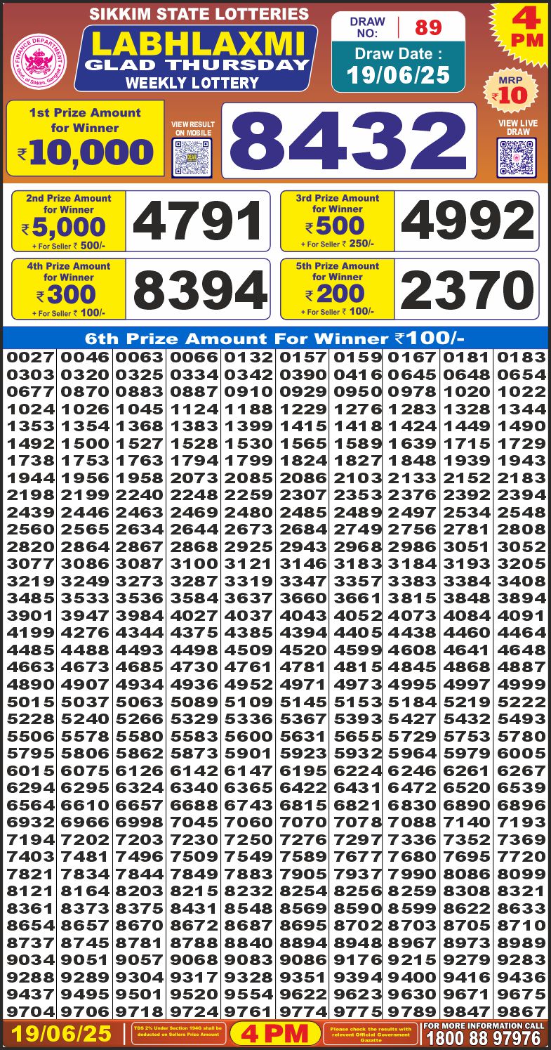 RESULT LABHLAXMI GLAD THURSDAY WEEKLY LOTTERY 19.06.2025 Leave a Comment on RESULT LABHLAXMI GLAD THURSDAY WEEKLY LOTTERY 19.06.2025 Share: XFacebookPinterestRedditVKDiggLinkedinMix