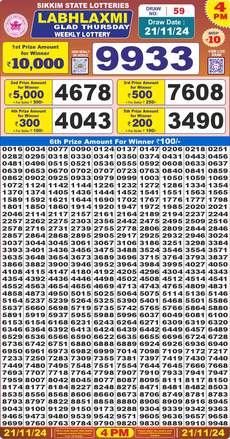 RESULT LABHLAXMI GLAD THURSDAY WEEKLY LOTTERY 21.11.2024 Leave a Comment on RESULT LABHLAXMI GLAD THURSDAY WEEKLY LOTTERY 21.11.2024 Share: XFacebookPinterestRedditVKDiggLinkedinMix