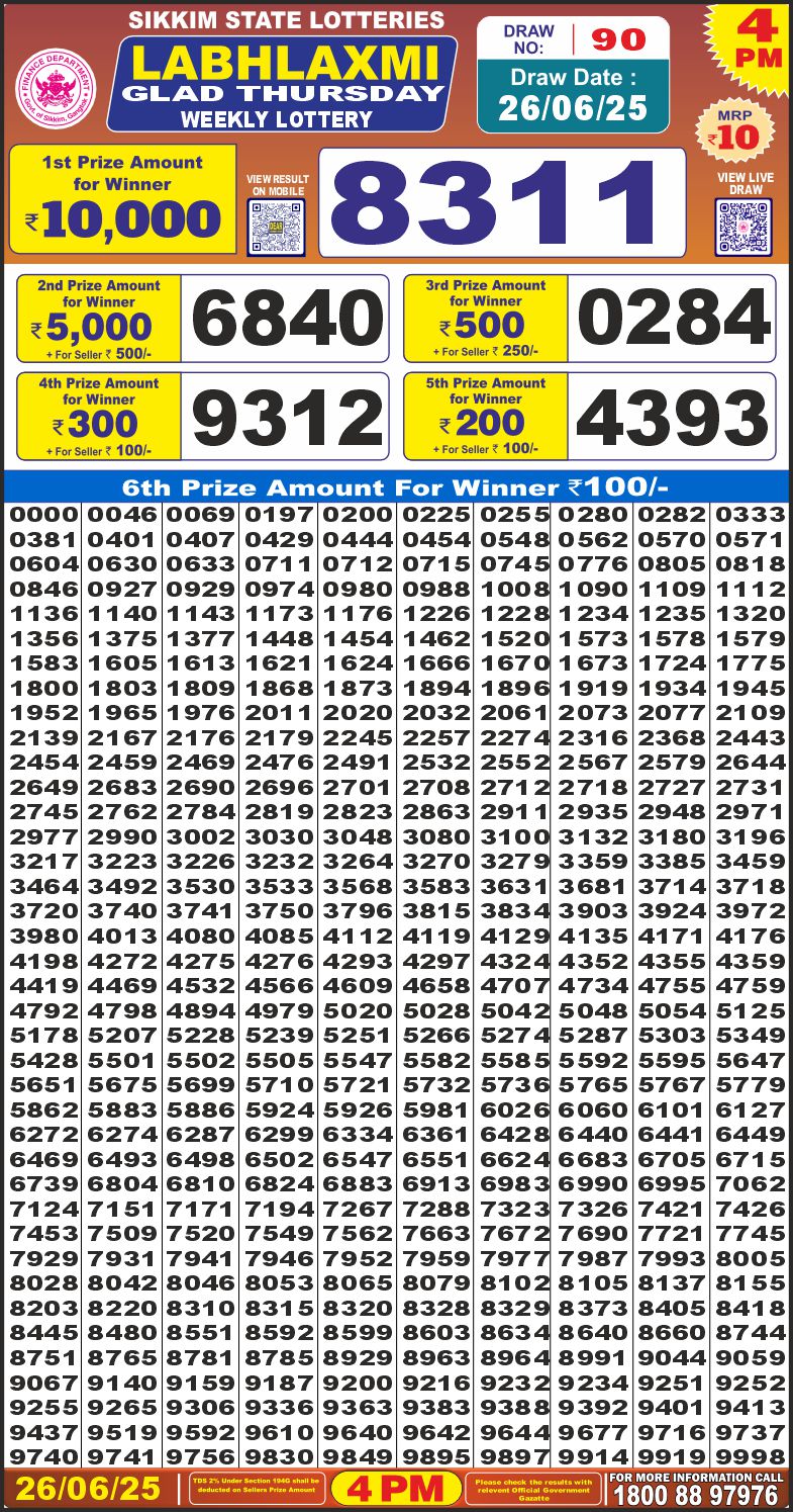 RESULT LABHLAXMI GLAD THURSDAY WEEKLY LOTTERY 26.06.2025 Leave a Comment on RESULT LABHLAXMI GLAD THURSDAY WEEKLY LOTTERY 26.06.2025 Share: XFacebookPinterestRedditVKDiggLinkedinMix