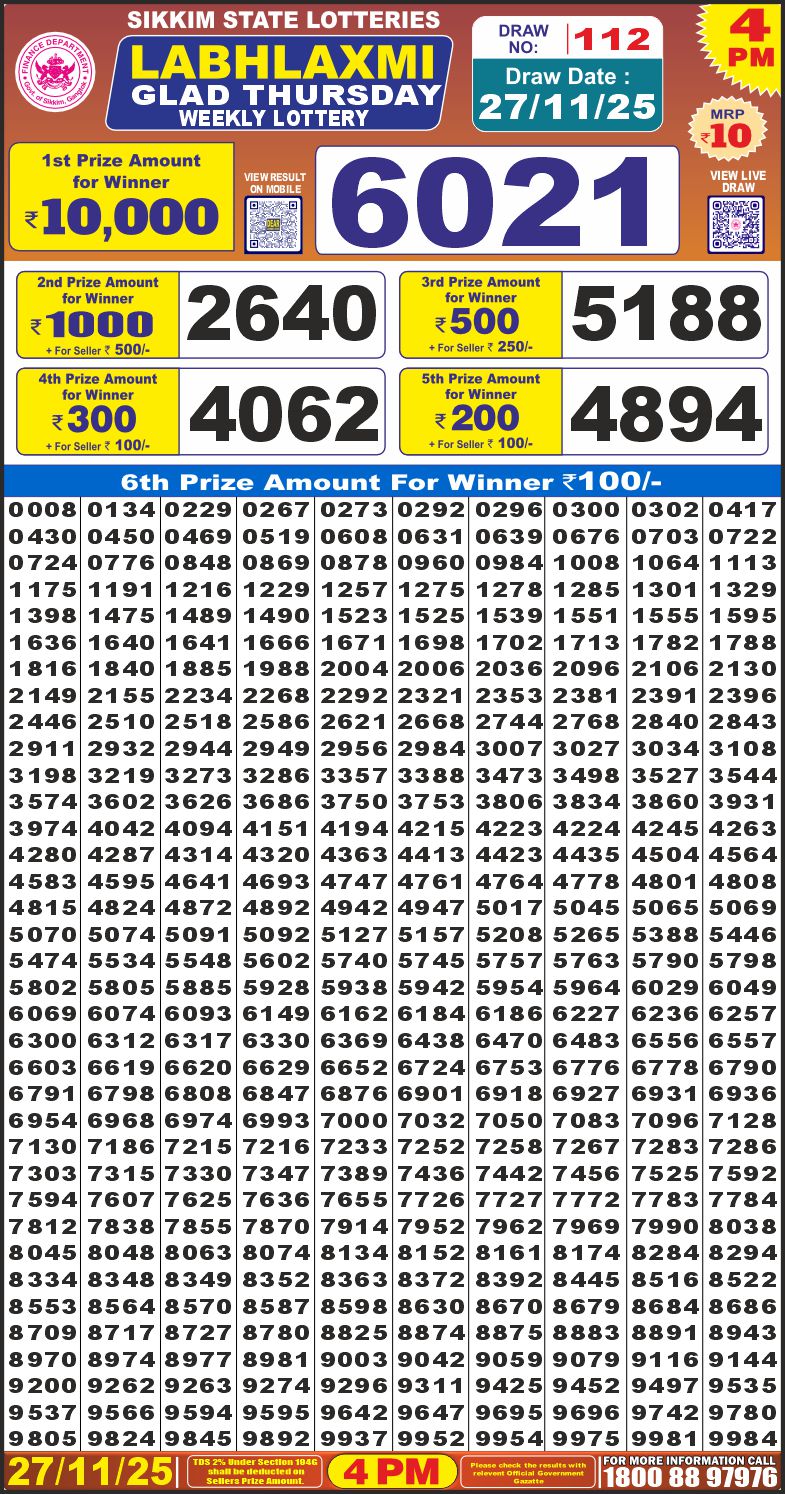 RESULT LABHLAXMI GLAD THURSDAY WEEKLY LOTTERY 27.11.2025 Leave a Comment on RESULT LABHLAXMI GLAD THURSDAY WEEKLY LOTTERY 27.11.2025 Share: XFacebookPinterestRedditVKDiggLinkedinMix