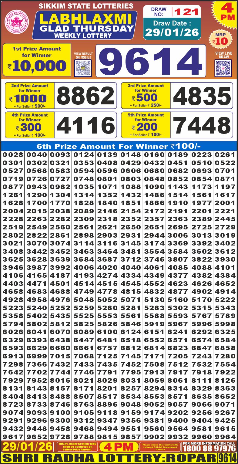 RESULT LABHLAXMI GLAD THURSDAY WEEKLY LOTTERY 29.01.2026 Leave a Comment on RESULT LABHLAXMI GLAD THURSDAY WEEKLY LOTTERY 29.01.2026 Share: XFacebookPinterestRedditVKDiggLinkedinMix