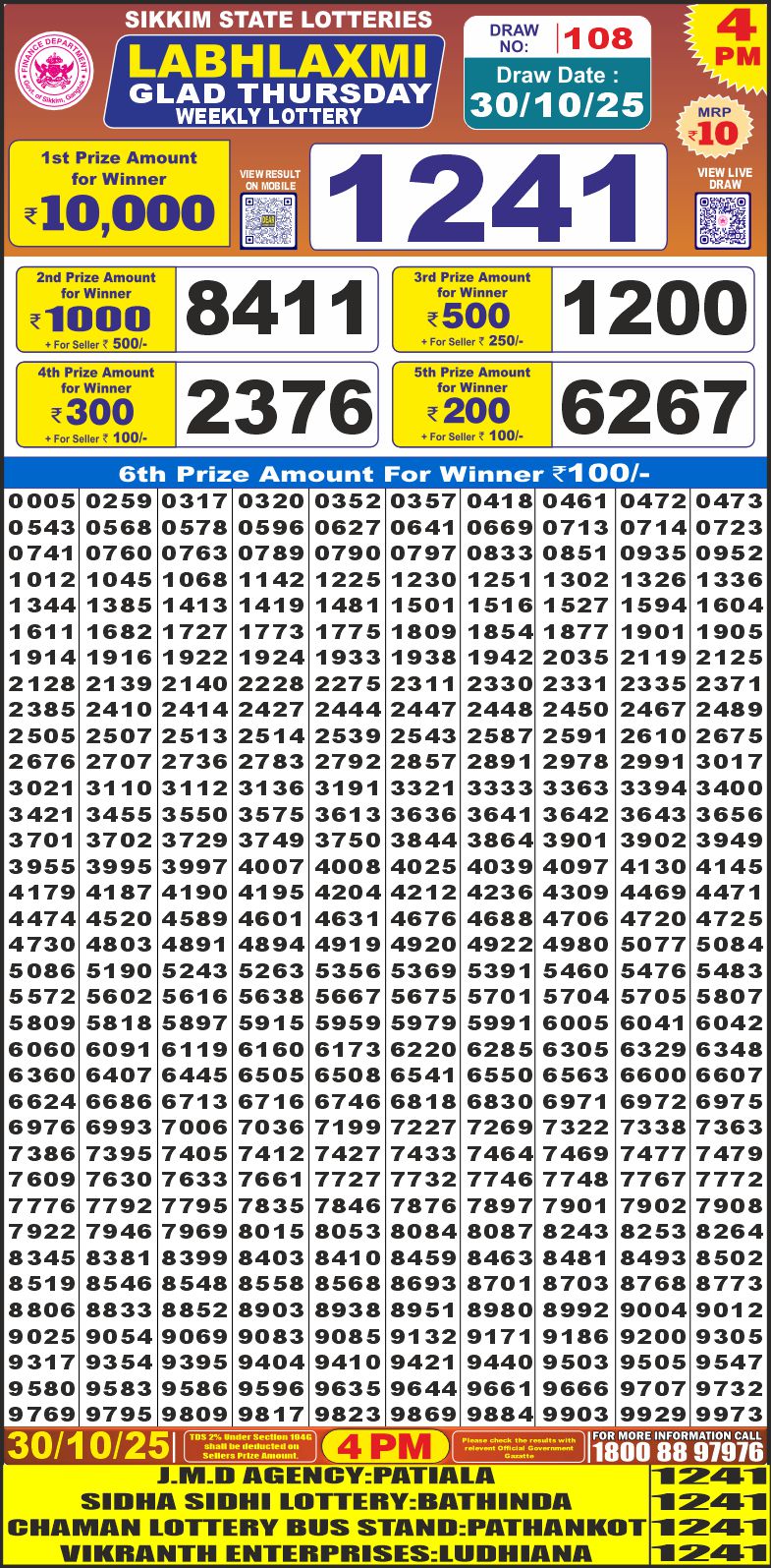 RESULT LABHLAXMI GLAD THURSDAY WEEKLY LOTTERY 30.10.2025 Leave a Comment on RESULT LABHLAXMI GLAD THURSDAY WEEKLY LOTTERY 30.10.2025 Share: XFacebookPinterestRedditVKDiggLinkedinMix
