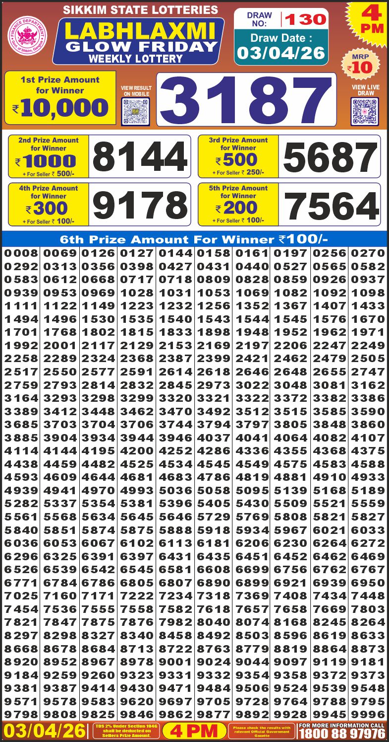 RESULT LABHLAXMI GLOW FRIDAY WEEKLY LOTTERY 03.04.2026 Leave a Comment on RESULT LABHLAXMI GLOW FRIDAY WEEKLY LOTTERY 03.04.2026 Share: XFacebookPinterestRedditVKDiggLinkedinMix
