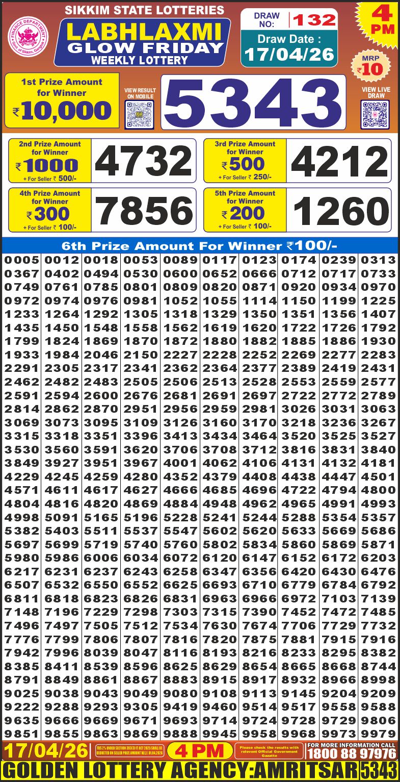RESULT LABHLAXMI GLOW FRIDAY WEEKLY LOTTERY 17.04.2026 Leave a Comment on RESULT LABHLAXMI GLOW FRIDAY WEEKLY LOTTERY 17.04.2026 Share: XFacebookPinterestRedditVKDiggLinkedinMix