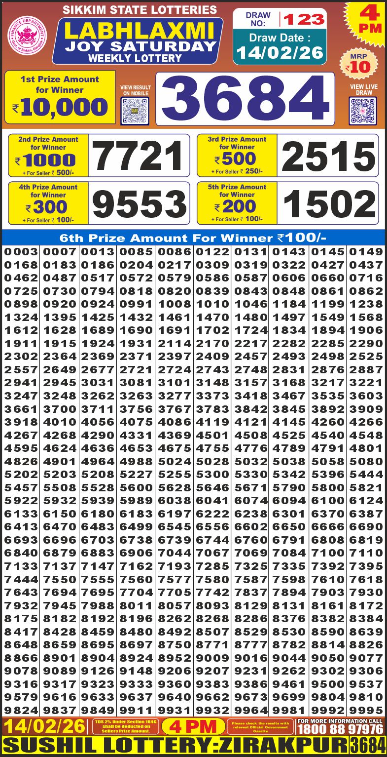 RESULT LABHLAXMI JOY SATURDAY WEEKLY LOTTERY 14.02.2026 Leave a Comment on RESULT LABHLAXMI JOY SATURDAY WEEKLY LOTTERY 14.02.2026 Share: XFacebookPinterestRedditVKDiggLinkedinMix