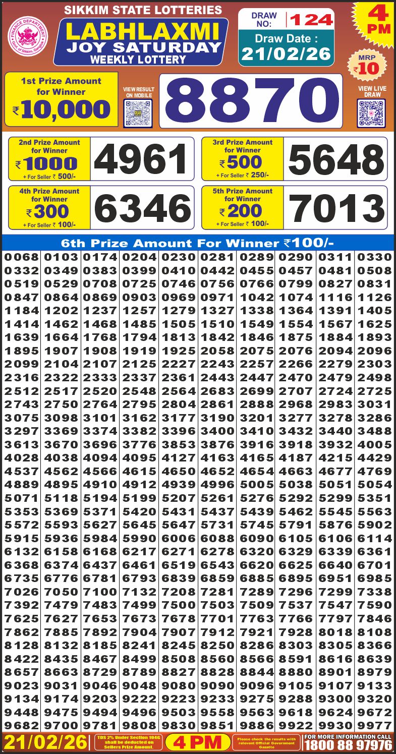 RESULT LABHLAXMI JOY SATURDAY WEEKLY LOTTERY 21.02.2026 Leave a Comment on RESULT LABHLAXMI JOY SATURDAY WEEKLY LOTTERY 21.02.2026 Share: XFacebookPinterestRedditVKDiggLinkedinMix