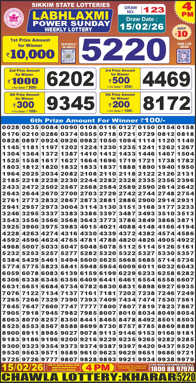 RESULT LABHLAXMI POWER SUNDAY WEEKLY LOTTERY 15.02.2026 Leave a Comment on RESULT LABHLAXMI POWER SUNDAY WEEKLY LOTTERY 15.02.2026 Share: XFacebookPinterestRedditVKDiggLinkedinMix