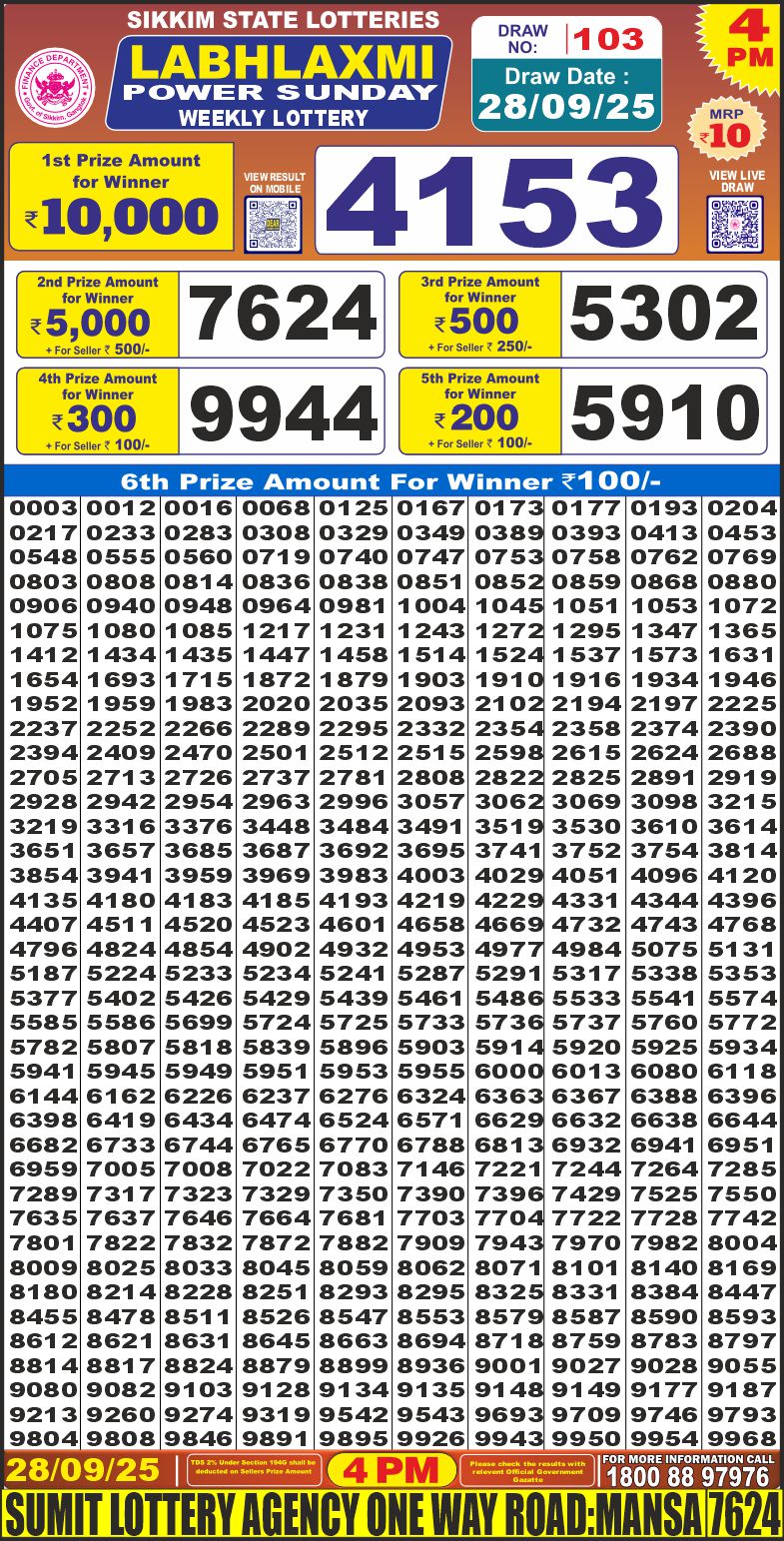 RESULT LABHLAXMI POWER SUNDAY WEEKLY LOTTERY 28.09.2025 Leave a Comment on RESULT LABHLAXMI POWER SUNDAY WEEKLY LOTTERY 28.09.2025 Share: XFacebookPinterestRedditVKDiggLinkedinMix