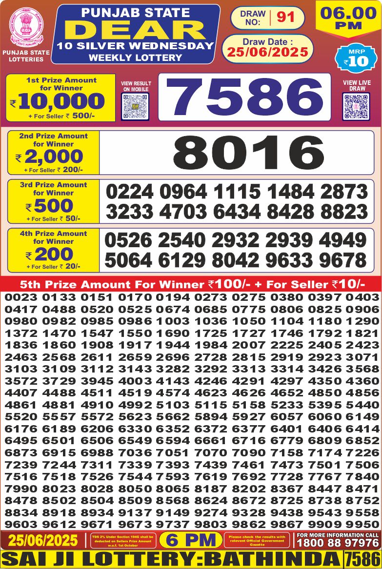 RESULT PUNJAB STATE DEAR 10 SILVER WEDNESDAY WEEKLY LOTTERY 25.06.2025 Leave a Comment on RESULT PUNJAB STATE DEAR 10 SILVER WEDNESDAY WEEKLY LOTTERY 25.06.2025 Share: XFacebookPinterestRedditVKDiggLinkedinMix