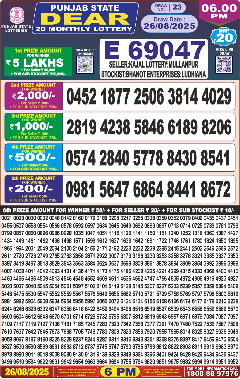 RESULT PUNJAB STATE DEAR 20 MONTHLY 26.08.2025 Leave a Comment on RESULT PUNJAB STATE DEAR 20 MONTHLY 26.08.2025 Share: XFacebookPinterestRedditVKDiggLinkedinMix